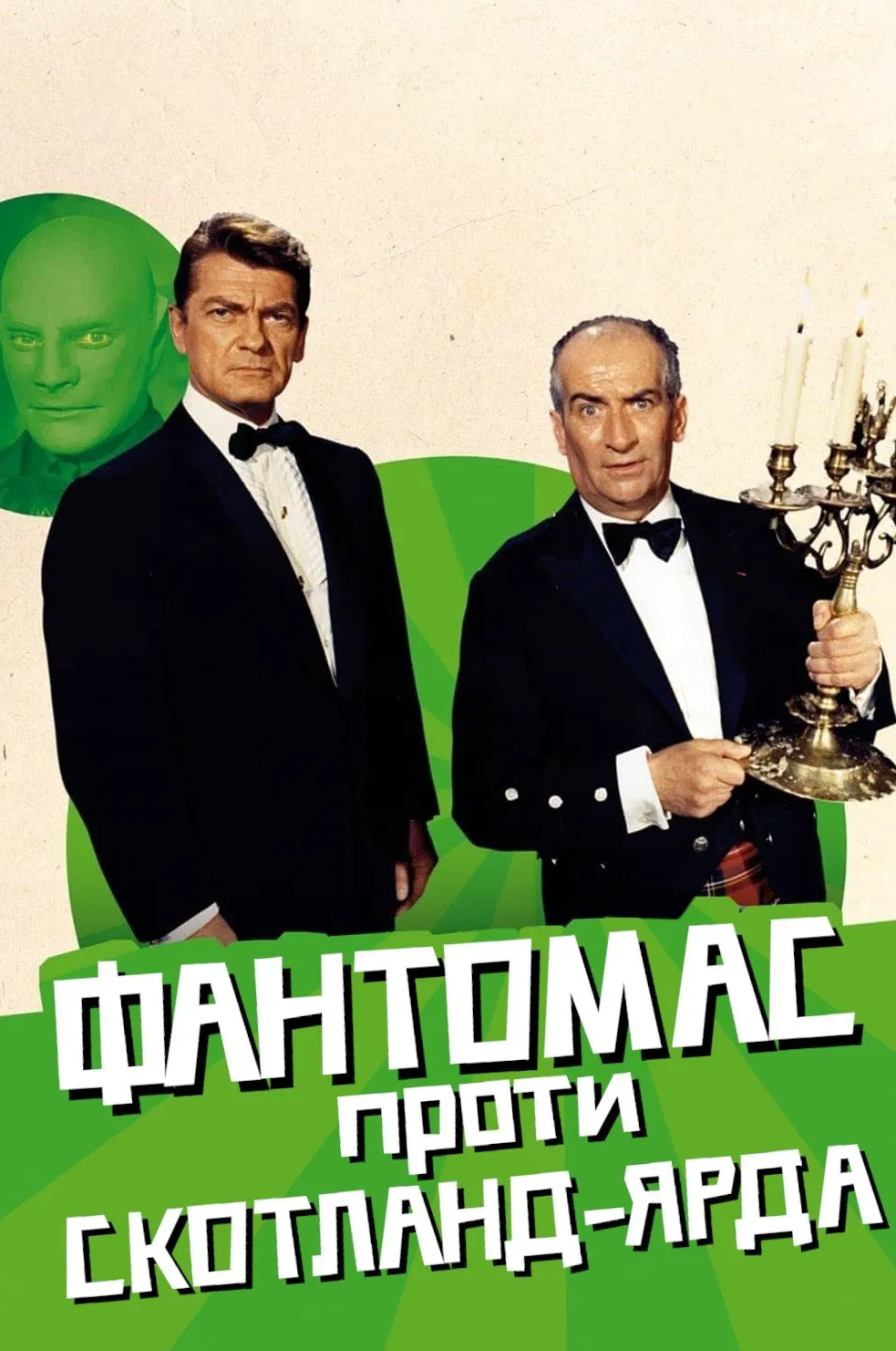 Пригодницька комедія 'Фантомас проти Скотланд Ярду' (Fantomas contre Scotland Yard), остання частина трилогії трохи кримінального, трохи гумористичного фільму. Це класика французького кіно. У цьому фільмі зібралися найвідоміші французькі актори двадцятого століття: безперечний улюбленець жінок, чарівний Жан Маре, жартівник Луї Де Фюнес і чарівна Мілен Демонжо. Шанувальники цих акторів, залишаться дуже задоволені переглядом цієї картини. За сюжетом фільму, головний герой, міжнародний терорист на прізвисько Фантомас, в черговий раз наводить жах на людей. Кілька років про нього нічого не було чутно, і раптом... Він вирішує укласти з найбагатшими людьми світу якусь угоду. За певну плату герой гарантує їм безпеку, якийсь податок за життя. Всі вершки суспільства перебувають в жаху, вони готові платити будь-які гроші, тільки б спокійно жити, адже поки такий злочинець розгулює на свободі, ні про який спокій не може бути й мови. І тільки безстрашний комісар Жюв і його друзі Фандор і Елен, готові знешкодити злочинця, імені якого, ніхто ніколи не бачив. Вони приїжджають в Шотландський замок, з місією убезпечити його власника від злого умислу Фантомаса, але тут на них чекає ціла низка небезпечних, а часом дуже комічних пригод...